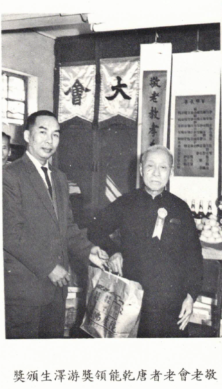 孟子曰:老吾老,與及人之老,為我國博愛之美德,故本社於1937年(丁丑年)起,每年舉辦冬季敬老大會。凡社內長者,達六秩之年,咸受邀請茶點招待,歡敍一堂,敬奉禮包月份,禮雖輕而敬老尊賢之意甚重也。